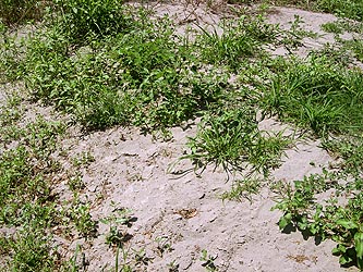 Gli adulti appaiono agli inizi di maggio per 10-15 giorni e sono attivi dalle ore 10:00 alle prime ore del pomeriggio. I maschi volano, a volte numerosi, radenti al suolo o comunque non oltre i 40-50 cm da terra, si posano su qualche stelo ma solo per ripartire subito dopo in cerca delle femmine che invece restano sempre al suolo o all'interno di gallerie scavate nella sabbia. Frequentemente, la femmina deambulante al suolo si trova nascosta alla vista a causa del gran numero di maschi che la corteggiano.
