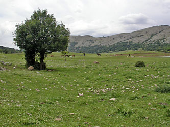 - piccolo altopiano di montagna nei pressi di Cervara, a 1100 m, pascolato prevalentemente cavalli e mucche, con piccoli alberi radi di Crataegus, nocciolo, ecc., circondati da cespugli di uva spina, ribes, prugnolo;