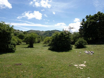 - piccolo prato relativamente umido in una radura del bosco misto su Monte Gennaro, intorno a 900 m, in ambiente mediamente pascolato, con cespuglietti sparsi di prugnolo e rovi;