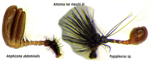 Clava antennale nei maschi di 3 articoli, liberi e relativamente lunghi.