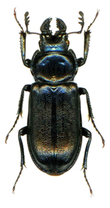 Lunghezza 12-15 mm. Sepriormente di colore blu metallico, pronoto a volte un riflesso dorato, anche interamente viola scuro. Molto simile al Platicerus caraboides Linnaeus, 1758 con il quale è stato a lungo confuso ma di taglia maggiore. Pronoto con punteggiatura piu&grave sparsa con angoli posteriori ottusi, le docce laterali larghe e appiattite soprattutto davanti gli angoli posteiori, il ribordo sottile e poco rilevato.