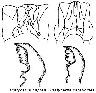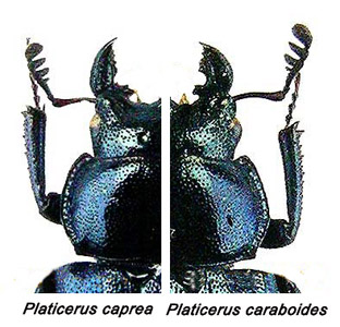 Maurizio Gigli, il 20 giugno 1984, ha osservato sul Monte Viglio durante una esplosione demografica di Platycerus caprea che molti esemplari posati sulle estremità apicali dei rametti di arbusti di faggio sul margine del bosco uccidevano gli afidi schiacciandoli con le mandibole e succhiandone il liquido zuccherino che ne usciva. Di fatto, anche se in effetti non si nutrivano dei tessuti di questi insetti, si puo' comunque definire una predazione secondaria.