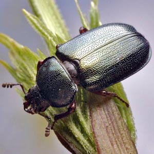 Lunghezza 8-12 mm. Corpo allungato, depresso, nero metallico, blu acciaio o verdastro; parte superiore con pubescenza molto corta chiara e molto sparsa. Capo corto, con angoli anteriori rilevati e arrotondati, superiormente con punteggiatura di media grossezza e poco densa. Torace transverso, lati curvi regolarmente, docce laterali profonde e strette anche davanti gli angoli posteriori con ribordo nettamente rilevato, angoli posteriori retti. Scutello triangolare, breve, punteggiato alla base. Elitre relativamente corte, trasversalmente covesse, strie molto fini, strette, appena distinte nella punteggiatura del fondo. Tibie anteriori troncate obliquamente all'apice; margine esterno densamente e regolarmente crenellato.