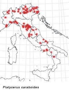 Presente in quasi tutta l'Europa fino in Scandinavia, in Italia solo continentale; in Africa: Algeria, Marocco e Tunisia; in Asia: dalla Siria alla Siberia e Cina nordorientale. Ne esiste una sottospecie, P. caraboides caerulosus Didier & Ségui, 1953, in Hunan.