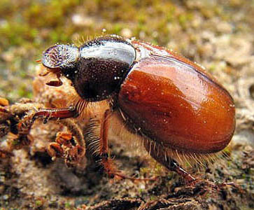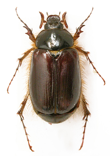 Lunghezza 10-15 mm. Aspetto lucido, interamente bruno-nero o nettamente bicolore con elitre bruno-castagna (ab. dilatata Erichson). Facilmente distinguibile dalla congenerica emarginata per il margine anteriore del clipeo, in entrabi i sessi, semplicemente sinuato e non profondamente inciso e per l'assenza di peli eretti alla base del pronoto.