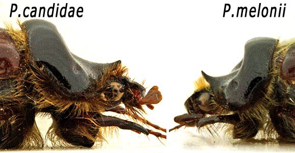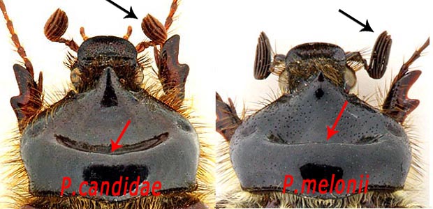 P.melonii si differenzia da P.demoflysi per la differente forma del clipeo, la clava di 5 articoli lamellari e più lunga dei primi 3 articoli riuniti, il 3 antennomero 1,5 volte più lungo che largo all'apice e per i denti esterni delle protibie che sono arrotondati all'apice e non appuntiti.